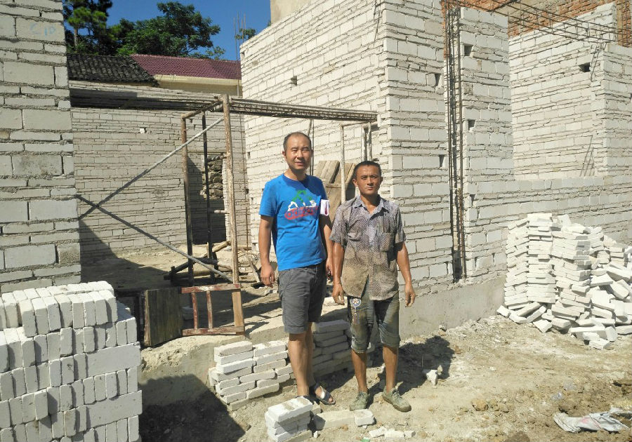 朱會恒(左)幫助困難戶翻修房子
