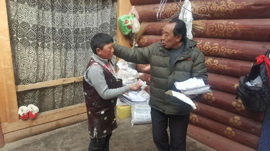 每次(ci)到(dao)(dao)貧困(kun)戶家(jia)(jia)中開展(zhan)工作(zuo),遇到(dao)(dao)哪家(jia)(jia)有急事(shi)需要錢,扎(zha)多(duo)都會從自(zi)(zi)己本(ben)不寬裕(yu)的(de)口袋中拿出(chu)一(yi)點來幫助他們。貧困(kun)戶托瓦措家(jia)(jia)是單親(qin)家(jia)(jia)庭(ting),孩子(zi)在上小學(xue),還有一(yi)個(ge)80多(duo)歲的(de)老人需要照顧,生活困(kun)難。扎(zha)多(duo)了解情況后,就經常到(dao)(dao)他家(jia)(jia),鼓(gu)勵孩子(zi)努力(li)學(xue)習,幫孩子(zi)檢查家(jia)(jia)庭(ting)作(zuo)業,了解近來的(de)學(xue)習情況。看到(dao)(dao)孩子(zi)學(xue)習成績進步了,扎(zha)多(duo)欣喜地自(zi)(zi)費買來禮物獎勵給孩子(zi)。