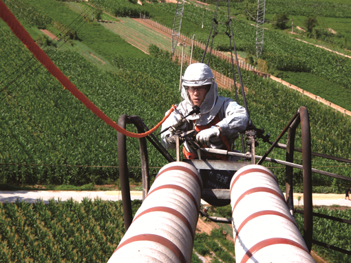 2008年夏天,山東電(dian)(dian)網500千伏(fu)辛聊(liao)線有一處導線破損,需要及時處理(li)。按照規定,斷(duan)股(gu)超過25%,必(bi)須(xu)切斷(duan)電(dian)(dian)源,重新(xin)壓(ya)接導線。而當(dang)時天氣炎(yan)熱,這條(tiao)線路(lu)所(suo)帶(dai)的負荷特別(bie)大,切斷(duan)電(dian)(dian)源檢修(xiu)會導致限電(dian)(dian)。最終,公(gong)司決定帶(dai)電(dian)(dian)處理(li)導線破損問(wen)題。王進主(zhu)動請纓,在(zai)高溫中(zhong)爬(pa)上(shang)50多米高的鐵塔實施帶(dai)電(dian)(dian)修(xiu)補。當(dang)時,鐵塔的表(biao)面溫度已經達到60攝(she)氏度。