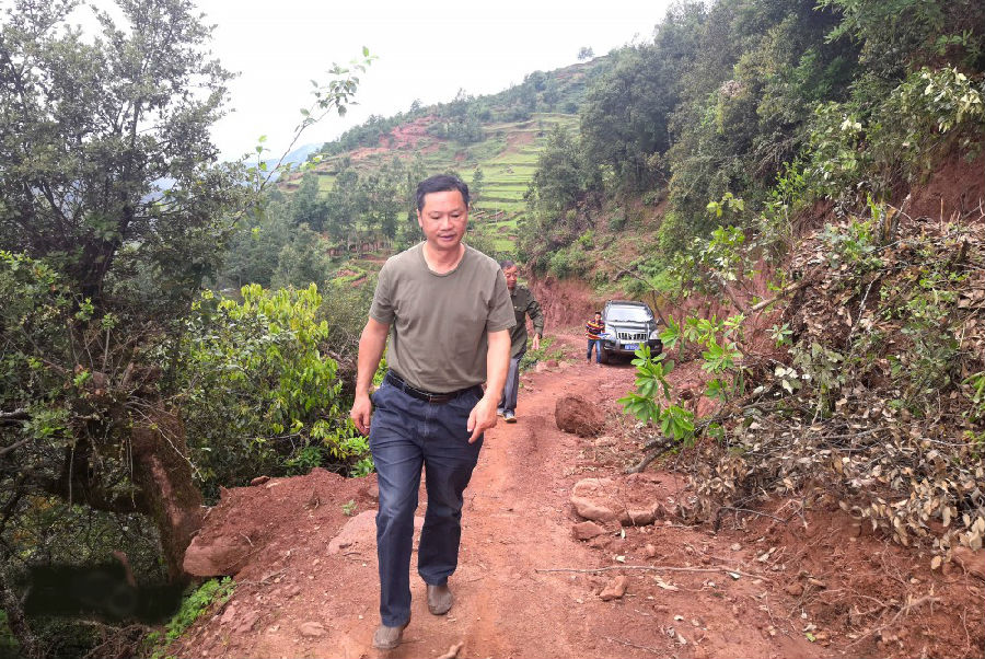 山路崎嶇,楊際軍下車徒步前往農戶家中