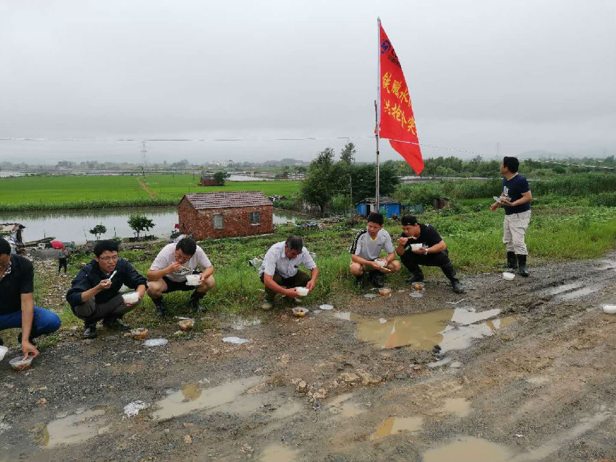 “我是(shi)黨(dang)員(yuan),我先(xian)上。”7月15日,有(you)著(zhu)(zhu)35年黨(dang)齡的(de)(de)(de)(de)(de)老黨(dang)員(yuan)朱(zhu)道(dao)清(qing)(qing),在(zai)(zai)得知林頭鎮汛情告急的(de)(de)(de)(de)(de)消息后(hou),他(ta)主動申請加(jia)(jia)入(ru)公(gong)司組織(zhi)的(de)(de)(de)(de)(de)抗(kang)(kang)洪(hong)突擊(ji)隊。朱(zhu)彬兵是(shi)朱(zhu)道(dao)清(qing)(qing)的(de)(de)(de)(de)(de)兒子(zi),剛(gang)參加(jia)(jia)工(gong)(gong)作(zuo)(zuo)不(bu)久,是(shi)一(yi)名初入(ru)社會的(de)(de)(de)(de)(de)“90”后(hou),受到父親的(de)(de)(de)(de)(de)影響,他(ta)在(zai)(zai)第一(yi)時間(jian)也報(bao)名參加(jia)(jia)了此(ci)次抗(kang)(kang)洪(hong)搶險工(gong)(gong)作(zuo)(zuo)。朱(zhu)道(dao)清(qing)(qing)在(zai)(zai)2016年汛期曾經參加(jia)(jia)過防汛工(gong)(gong)作(zuo)(zuo),有(you)著(zhu)(zhu)豐(feng)富(fu)的(de)(de)(de)(de)(de)經驗。在(zai)(zai)圩堤(di)上,朱(zhu)道(dao)清(qing)(qing)扛著(zhu)(zhu)“抗(kang)(kang)洪(hong)突擊(ji)隊”大(da)旗(qi),踩在(zai)(zai)濕滑的(de)(de)(de)(de)(de)泥巴路上,深一(yi)腳(jiao)淺(qian)一(yi)腳(jiao),仔細(xi)地觀察水勢,摸排管涌,一(yi)整個上午滴(di)水未進。