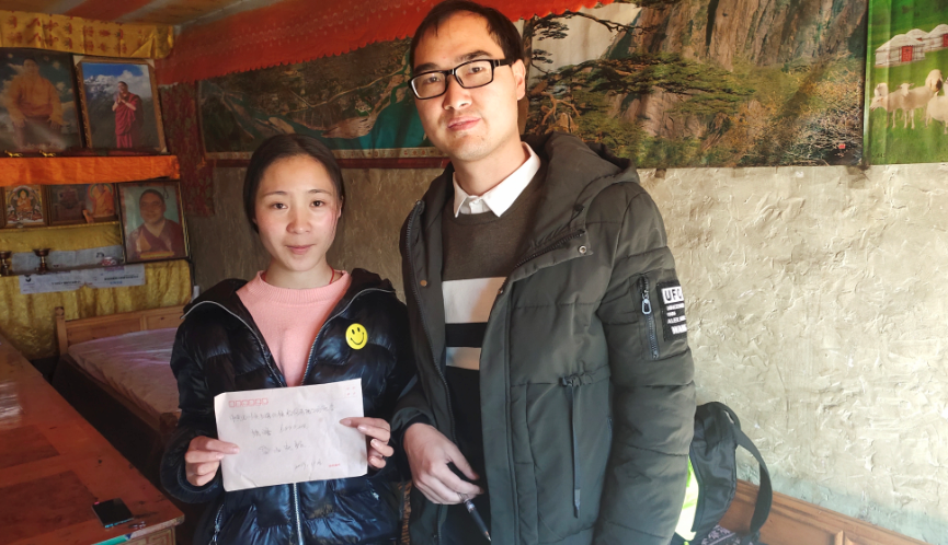 考上大學的扎西志瑪與李興民合影(右)