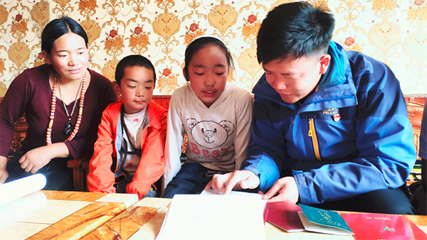 走(zou)訪過(guo)程(cheng)發現,當地(di)貧困的(de)(de)(de)根(gen)本原因是村(cun)民的(de)(de)(de)思(si)(si)想落后(hou),村(cun)民散花家里的(de)(de)(de)兩(liang)個孩(hai)子(zi)沒(mei)上(shang)(shang)學(xue)(xue),他(ta)同村(cun)兩(liang)委班子(zi)成員(yuan)一起對家長做了思(si)(si)想教育(yu)工作,并宣(xuan)講了九(jiu)年(nian)(nian)義務(wu)教育(yu)法,最(zui)后(hou)把(ba)適(shi)齡的(de)(de)(de)兩(liang)個孩(hai)子(zi)送到(dao)了學(xue)(xue)校(xiao)(xiao)。為(wei)解決語言不通的(de)(de)(de)問題,在控(kong)輟保學(xue)(xue)工作中,劉印洲帶(dai)著駐村(cun)工作隊一起走(zou)家入戶(hu),一遍說(shuo)不同,他(ta)們(men)就(jiu)說(shuo)兩(liang)遍三遍,從(cong)來不厭(yan)其煩,2018年(nian)(nian)前后(hou)共為(wei)44個輟學(xue)(xue)兒(er)童的(de)(de)(de)家庭做了思(si)(si)想工作,把(ba)44名適(shi)齡兒(er)童送到(dao)了學(xue)(xue)校(xiao)(xiao),2019年(nian)(nian)共對23戶(hu)家庭做了九(jiu)年(nian)(nian)義務(wu)教育(yu)法宣(xuan)講;他(ta)還(huan)經(jing)常去(qu)異地(di)搬遷地(di)了解孩(hai)子(zi)的(de)(de)(de)學(xue)(xue)習情況,今年(nian)(nian)4月初,他(ta)去(qu)村(cun)民群保家中看望兩(liang)個孩(hai)子(zi)的(de)(de)(de)學(xue)(xue)習情況,詢問他(ta)們(men)上(shang)(shang)課能(neng)否聽得(de)懂(dong)、作業完成得(de)怎么樣。