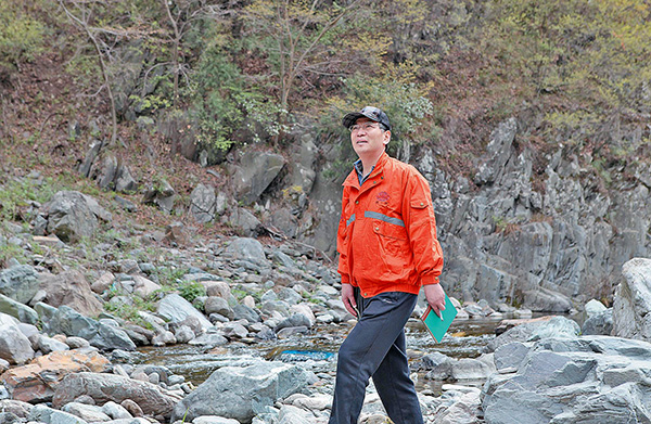 孟祥連在秦嶺腹地進行地質調查。(張孟橋 攝)