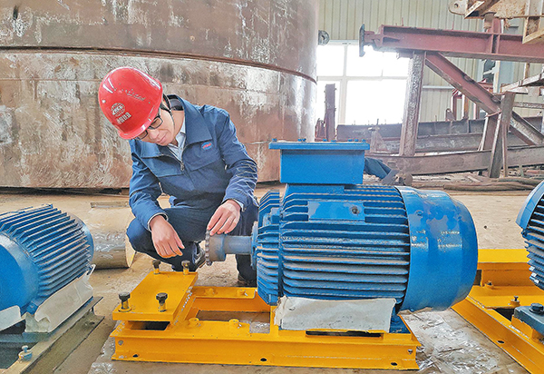 郭寅圣正在抽檢液壓泵電機聯軸器磨損情況(趙躍進 攝)