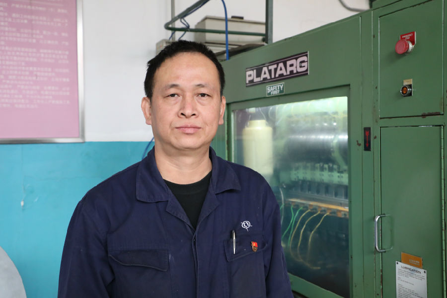 為了(le)掌握車工(gong)絕活,肖(xiao)(xiao)峰(feng)的(de)(de)(de)(de)手(shou)經常(chang)(chang)被(bei)車刀劃傷,鐵屑燙(tang)傷,他(ta)(ta)(ta)(ta)(ta)的(de)(de)(de)(de)衣服口袋里(li)常(chang)(chang)常(chang)(chang)放著幾塊止血貼,受(shou)傷貼上(shang)又繼續練習。至今,他(ta)(ta)(ta)(ta)(ta)的(de)(de)(de)(de)手(shou)上(shang)依然留(liu)有很(hen)多舊傷疤。有些技術難題(ti)(ti)只(zhi)是一個螺絲(si)松緊的(de)(de)(de)(de)問題(ti)(ti),他(ta)(ta)(ta)(ta)(ta)把操(cao)作(zuo)的(de)(de)(de)(de)每(mei)個流(liu)程(cheng)細(xi)節(jie)一一銘記于心(xin)。有的(de)(de)(de)(de)生(sheng)產難題(ti)(ti)只(zhi)是控制(zhi)的(de)(de)(de)(de)力度(du)問題(ti)(ti),他(ta)(ta)(ta)(ta)(ta)反復訓練,形成習慣,成為別人學不(bu)走的(de)(de)(de)(de)秘訣。“聽聲觀(guan)(guan)色”是肖(xiao)(xiao)峰(feng)沖(chong)(chong)制(zhi)的(de)(de)(de)(de)方(fang)法之(zhi)一。小小的(de)(de)(de)(de)異常(chang)(chang)聲音(yin)他(ta)(ta)(ta)(ta)(ta)都(dou)能夠感覺得到。他(ta)(ta)(ta)(ta)(ta)觀(guan)(guan)察和(he)聽設(she)備內模(mo)具的(de)(de)(de)(de)運(yun)動,是根(gen)據(ju)設(she)備運(yun)行(xing)的(de)(de)(de)(de)節(jie)奏,來預測(ce)產品的(de)(de)(de)(de)一致性等情(qing)況。“一般而言,模(mo)具要(yao)(yao)看光潔(jie)度(du)、垂直度(du)、同心(xin)度(du),機器運(yun)轉(zhuan)聲音(yin)要(yao)(yao)勻(yun)稱、舒暢,就(jiu)(jiu)像(xiang)自己的(de)(de)(de)(de)呼吸一樣,說明機器工(gong)作(zuo)正(zheng)常(chang)(chang)……”肖(xiao)(xiao)峰(feng)說,節(jie)奏是沖(chong)(chong)制(zhi)工(gong)作(zuo)情(qing)況最直觀(guan)(guan)的(de)(de)(de)(de)說明,只(zhi)要(yao)(yao)仔細(xi)觀(guan)(guan)察,肯定可以提前預測(ce)生(sheng)產過程(cheng)中可能出現的(de)(de)(de)(de)問題(ti)(ti),掌控沖(chong)(chong)制(zhi)的(de)(de)(de)(de)節(jie)奏。 “干一行(xing)就(jiu)(jiu)要(yao)(yao)愛一行(xing),選(xuan)擇了(le)兵工(gong)這個崗位,就(jiu)(jiu)要(yao)(yao)無(wu)私地付出,保證每(mei)一發產品可靠。”肖(xiao)(xiao)峰(feng)嚴(yan)謹對待工(gong)作(zuo)中的(de)(de)(de)(de)每(mei)個環節(jie)。工(gong)作(zuo)以來,他(ta)(ta)(ta)(ta)(ta)追求完美,不(bu)停歇地調(diao)試、完善,使產品質量、外觀(guan)(guan)達到極致,贏得了(le)上(shang)下游(you)和(he)軍方(fang)的(de)(de)(de)(de)良好口碑。