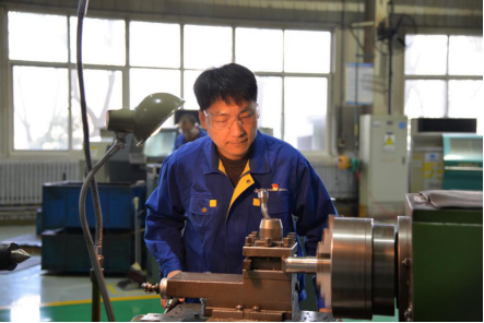 他,是(shi)一名(ming)技術工人。身著藍(lan)色(se)工裝,啟動車床,精(jing)湛技藝讓人贊不絕口(kou)。