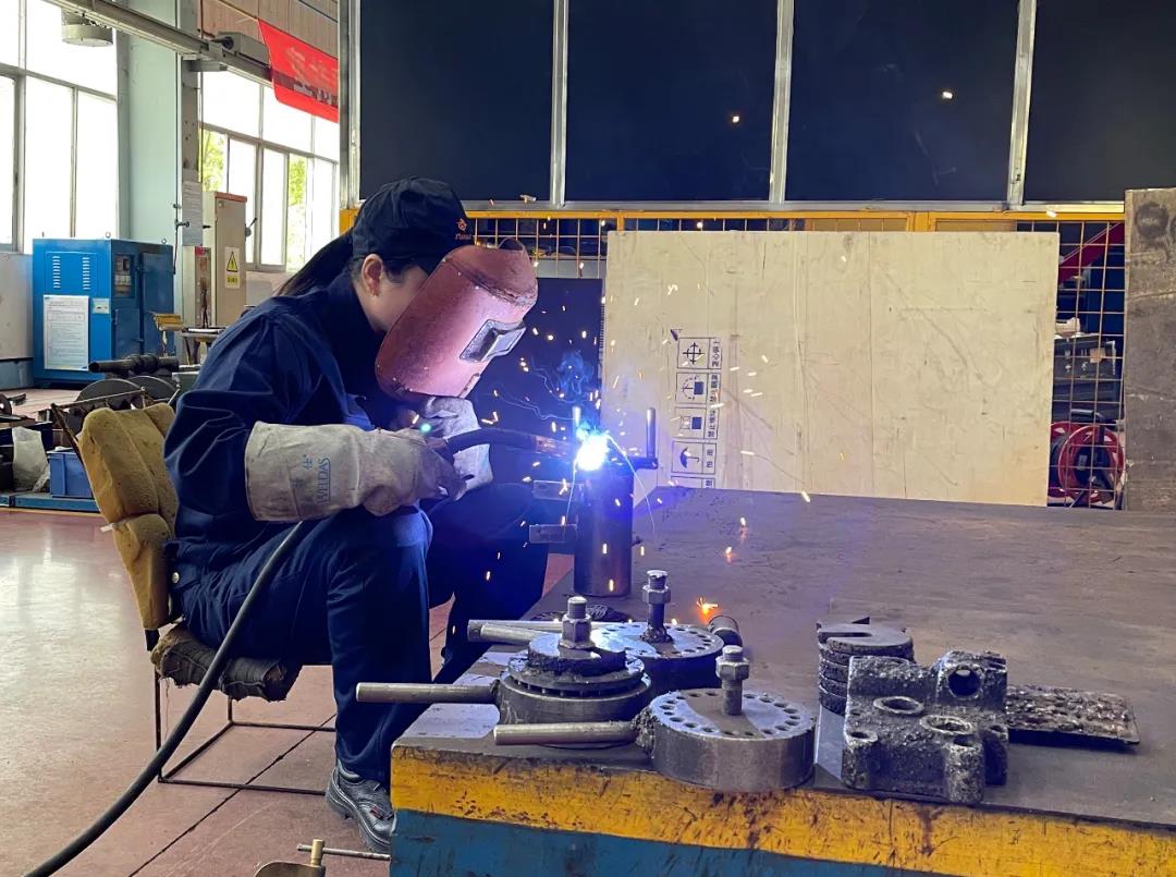 對接、預(yu)熱、引(yin)弧、運條、在焊縫邊緣與(yu)母材表面(mian)圓(yuan)滑過渡……4月(yue)21日,莫海燕(yan)如(ru)往常(chang)一樣穿著厚(hou)厚(hou)的(de)工服,彎著腰坐在工位上,拿著焊槍(qiang),在花火四(si)濺中開始一天的(de)工作。今年(nian)41歲(sui)的(de)莫海燕(yan),在中國兵器工業集團(tuan)江麓機電集團(tuan)有限公司的(de)焊接一線(xian),一干便是(shi)24年(nian)。