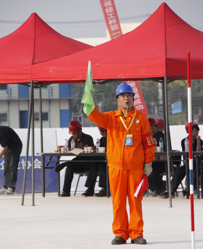 變(bian)幅(fu)、起落(luo)鉤(gou)、擺桿(gan)……正式比賽現場,指揮的哨子清脆(cui)響亮、吊(diao)裝指揮手中的紅旗和(he)綠旗不斷(duan)變(bian)化著動作,280噸履帶吊(diao)長(chang)(chang)長(chang)(chang)的臂桿(gan),吊(diao)著重達(da)15噸的履帶,穩(wen)穩(wen)地(di)穿(chuan)過了最后兩(liang)根標志桿(gan),準確地(di)安放(fang)到指定位置。