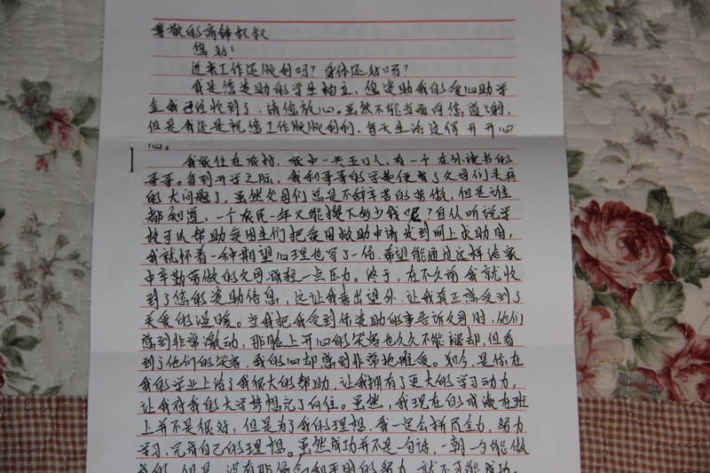 高鋒(feng)曾資助過的(de)貧困學生(sheng)給他(ta)寫信表達感激之(zhi)情。