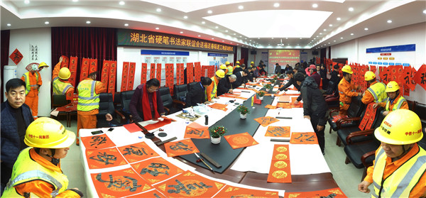 中鐵十一局城軌公司送春聯給農民工活動現場洋溢著喜慶的氣氛