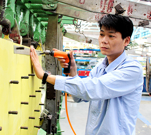 萬(wan)輝(hui)(hui)有著強烈的(de)(de)榮(rong)辱(ru)觀和團(tuan)隊(dui)意識。在(zai)高級(ji)教(jiao)練機L15的(de)(de)生產中(zhong),萬(wan)輝(hui)(hui)一(yi)(yi)(yi)馬當先,沖在(zai)最前(qian)(qian)面(mian)。油箱密封鉚(liu)接是(shi)(shi)一(yi)(yi)(yi)項時效(xiao)性(xing)較(jiao)強的(de)(de)工(gong)(gong)作(zuo),必須24小時內(nei)完成(cheng)分解和密封鉚(liu)接工(gong)(gong)作(zuo)。密封鉚(liu)接又是(shi)(shi)一(yi)(yi)(yi)個(ge)(ge)精(jing)細活(huo),必須確保(bao)不(bu)(bu)漏氣,不(bu)(bu)滲油,無多(duo)余(yu)物。膠(jiao)(jiao)(jiao)液(ye)(ye)(ye)少了(le)(le),可能漏氣滲油,膠(jiao)(jiao)(jiao)液(ye)(ye)(ye)多(duo)了(le)(le),則容(rong)易產生多(duo)余(yu)物。鉚(liu)接時,多(duo)余(yu)的(de)(de)膠(jiao)(jiao)(jiao)液(ye)(ye)(ye)從(cong)夾(jia)層中(zhong)擠出,滴在(zai)手上(shang)(shang)或(huo)零(ling)件(jian)上(shang)(shang),粘稠難除,稍不(bu)(bu)留意就(jiu)會打(da)滑,或(huo)傷(shang)及(ji)(ji)手指,或(huo)傷(shang)及(ji)(ji)零(ling)件(jian)表(biao)面(mian),萬(wan)輝(hui)(hui)一(yi)(yi)(yi)邊(bian)(bian)擦拭膠(jiao)(jiao)(jiao)液(ye)(ye)(ye),一(yi)(yi)(yi)邊(bian)(bian)不(bu)(bu)停(ting)地裝(zhuang)夾(jia)打(da)鉚(liu)。工(gong)(gong)作(zuo)服被汗(han)水和膠(jiao)(jiao)(jiao)液(ye)(ye)(ye)浸(jin)濕了(le)(le),他(ta)(ta)卻默(mo)默(mo)承受(shou)著。他(ta)(ta)堅定的(de)(de)信念和頑(wan)強的(de)(de)毅力感(gan)染著整個(ge)(ge)團(tuan)隊(dui),大家(jia)和他(ta)(ta)一(yi)(yi)(yi)起堅持(chi)、堅持(chi)、再堅持(chi),直到任(ren)務完成(cheng)。因為萬(wan)輝(hui)(hui)的(de)(de)帶動作(zuo)用(yong),他(ta)(ta)所(suo)在(zai)的(de)(de)工(gong)(gong)段績效(xiao)考核常年保(bao)持(chi)前(qian)(qian)列,團(tuan)隊(dui)成(cheng)員先后成(cheng)長為鉚(liu)接裝(zhuang)配線上(shang)(shang)的(de)(de)佼(jiao)佼(jiao)者。2017年,萬(wan)輝(hui)(hui)所(suo)在(zai)工(gong)(gong)段被評為“全國工(gong)(gong)人先鋒號”。萬(wan)輝(hui)(hui)這個(ge)(ge)名字不(bu)(bu)僅代表(biao)了(le)(le)他(ta)(ta)個(ge)(ge)人,更代表(biao)了(le)(le)一(yi)(yi)(yi)種精(jing)神——堅忍不(bu)(bu)拔(ba),永(yong)不(bu)(bu)言(yan)棄。