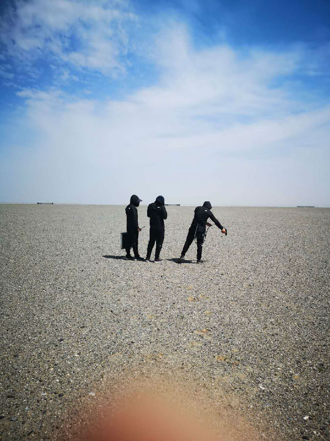 9月的(de)荒涼戈壁,正午(wu)地面溫度近50攝氏度,一層薄(bo)云遮住了太陽。副隊長(chang)張學文博士不斷仰頭(tou)望著天空(kong),“云散了一些,半小(xiao)時后估計能達到天氣要(yao)求,出發!”三(san)人小(xiao)分(fen)隊全副武裝,身(shen)著黑色長(chang)衣(yi)長(chang)褲(避免反(fan)光影響(xiang)數值準確性)走進(jin)測(ce)試區(qu)。