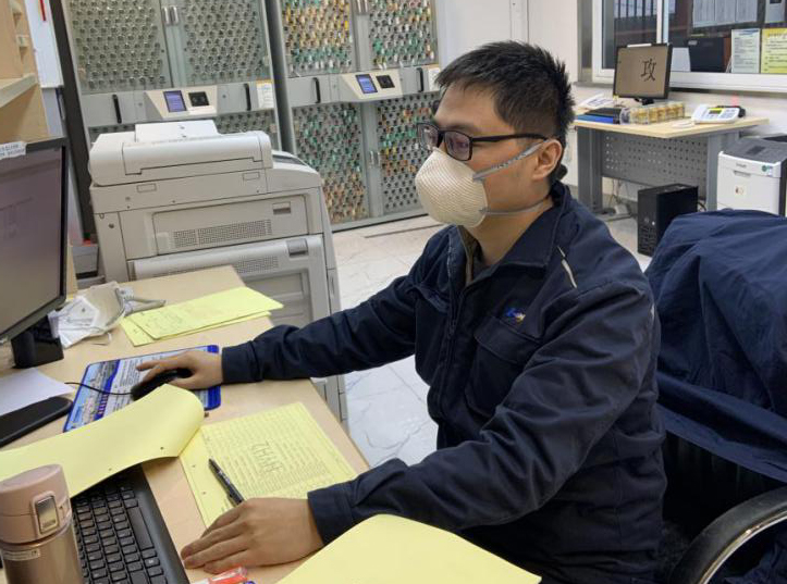 同一時間,戴著(zhu)口(kou)罩的孟雷在委培(pei)單(dan)位運行值班,守護核(he)安全、為電力(li)供應做貢獻。