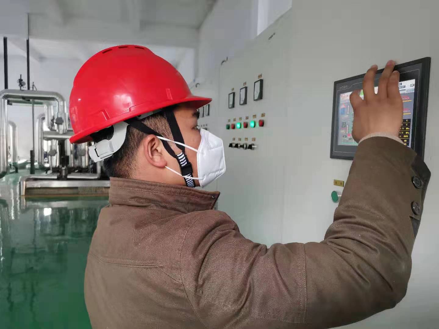 “化(hua)(hua)學需要(yao)制清水,你那邊準備(bei)一(yi)下。”化(hua)(hua)學值班員羅(luo)莎拿起了安全帽走進車間(jian),熟練地查看(kan)相關(guan)數(shu)據,啟動電機開始制水。