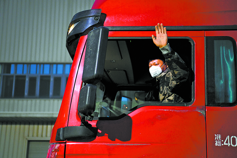 大批海油司機穿(chuan)越大半個(ge)中(zhong)國(guo),轟(hong)轟(hong)烈烈地(di)打(da)響了(le)車輪上的戰疫(yi),僅海油發展物流(liu)公司就一周發車25車次,將(jiang)疫(yi)情防(fang)控物資源(yuan)源(yuan)不斷(duan)運往(wang)祖國(guo)各地(di)。