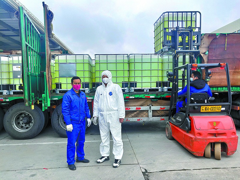 現在是2月6日日暮時分(fen)。劉建召剛(gang)從武(wu)漢返回天津,便(bian)到中國(guo)(guo)海油臨時生產84消毒液的(de)主(zhu)陣地(di)——中國(guo)(guo)海油所屬單位天津正達科(ke)技有限(xian)責任公司(si)提貨。顧不上吃(chi)口飯(fan)的(de)他,又要出發了。