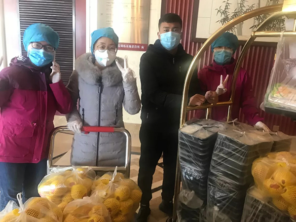 楊曉雨在酒店為援鄂醫療隊發餐