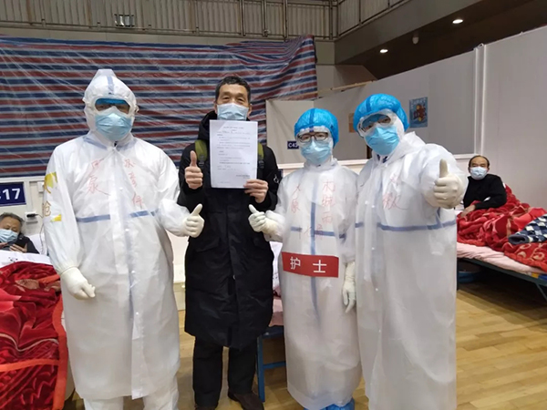 與治愈出院的患者合影