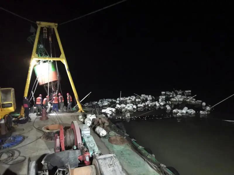 15分鐘(zhong)后,錨艇抵近搶險(xian)現(xian)場,發現(xian)原來港區(qu)航道(dao)319號燈(deng)(deng)浮位移嚴重,對船舶(bo)進出港造成極(ji)大(da)風險(xian),此時載(zai)有5萬噸木薯粉的(de)(de)(de)“亞太3”輪驟然面臨進退兩難的(de)(de)(de)困境,而木薯粉是生產醫用(yong)酒精的(de)(de)(de)重要原材料,能否盡快(kuai)打通(tong)出港通(tong)道(dao),直接關系(xi)到當地新(xin)冠肺炎疫情防控物資生產供應(ying)。面對晚間寒冷及燈(deng)(deng)浮位移區(qu)域(yu)大(da)量雜物交織的(de)(de)(de)復雜作業條(tiao)件,隊員們商議:“這(zhe)是一條(tiao)事關無數人的(de)(de)(de)‘生命’通(tong)道(dao),再難也(ye)得盡快(kuai)打通(tong)!”