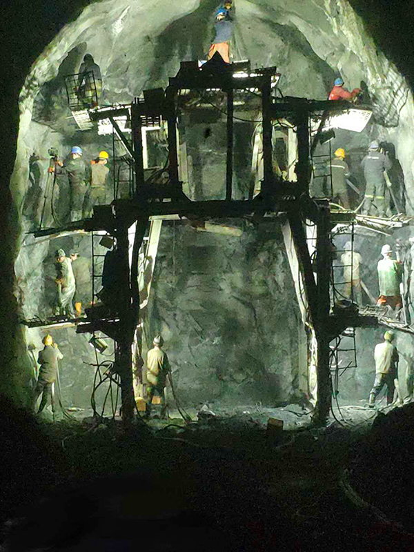 該隧道巖爆段(duan)落全(quan)長7500米,占隧道總長的(de)64.88%,安全(quan)風(feng)險(xian)極高(gao)。中(zhong)鐵十七局拉(la)林項目依托“馮(feng)愛職(zhi)工(gong)創新(xin)工(gong)作室(shi)”大力進行技術創新(xin),在全(quan)線率(lv)先采用水(shui)壓光面爆破(po)和聚能(neng)(neng)水(shui)壓光面爆破(po)技術,該技術有(you)效(xiao)利(li)用聚能(neng)(neng)管對(dui)爆轟力的(de)抑制和導(dao)向(xiang)作用,將產生的(de)高(gao)能(neng)(neng)流集(ji)中(zhong)向(xiang)隧道輪廓(kuo)線上傳導(dao),確保高(gao)能(neng)(neng)流毫(hao)無損失(shi)的(de)傳播到炮眼(yan)上,不僅(jin)有(you)利(li)于(yu)在復雜地質保障圍(wei)巖穩定和施工(gong)安全(quan),施工(gong)效(xiao)率(lv)還(huan)提高(gao)了10%以上,累(lei)計節約成(cheng)本數(shu)百(bai)萬元(yuan)。同(tong)時,結合現場實(shi)際圍(wei)巖情況對(dui)爆破(po)參數(shu)、支(zhi)護(hu)參數(shu)等進行合理調整(zheng),通過(guo)初噴鋼纖維混凝土、增(zeng)加初支(zhi)厚度(du)、架設鋼拱架進行防護(hu)等手段(duan)進一步增(zeng)強初支(zhi)穩定性。該創新(xin)工(gong)作室(shi)研發的(de)隧道智能(neng)(neng)噴霧(wu)裝置、防巖爆臺車(che)等國家(jia)實(shi)用新(xin)型專利(li)也為隧道施工(gong)增(zeng)添新(xin)動(dong)力。