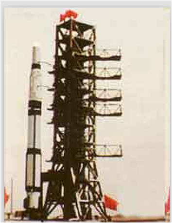 圖為長征一號火箭矗立在發射塔架