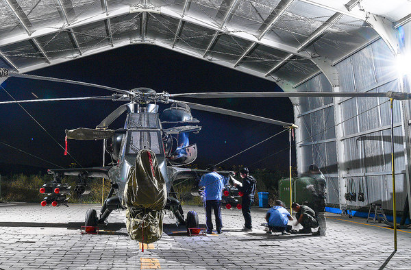 工作中的航空工業昌飛外場保障人員。湯向偉 攝