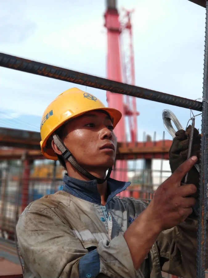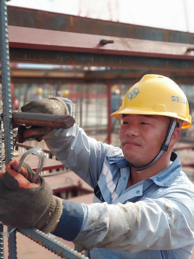 陽光下(xia),5號沉(chen)箱鋼(gang)筋籠已初具規模,上下(xia)交錯(cuo)的鋼(gang)筋間距均勻(yun),橫豎(shu)筆直(zhi)規整。難以想象,這個重(zhong)達380噸、由4萬(wan)多(duo)根鋼(gang)筋組成的龐然大(da)物是由30人在1周內完成的。“放在以前,就(jiu)算40多(duo)個人也要近1個月才行(xing)。”項目工程部長李雪磊難掩喜(xi)悅。