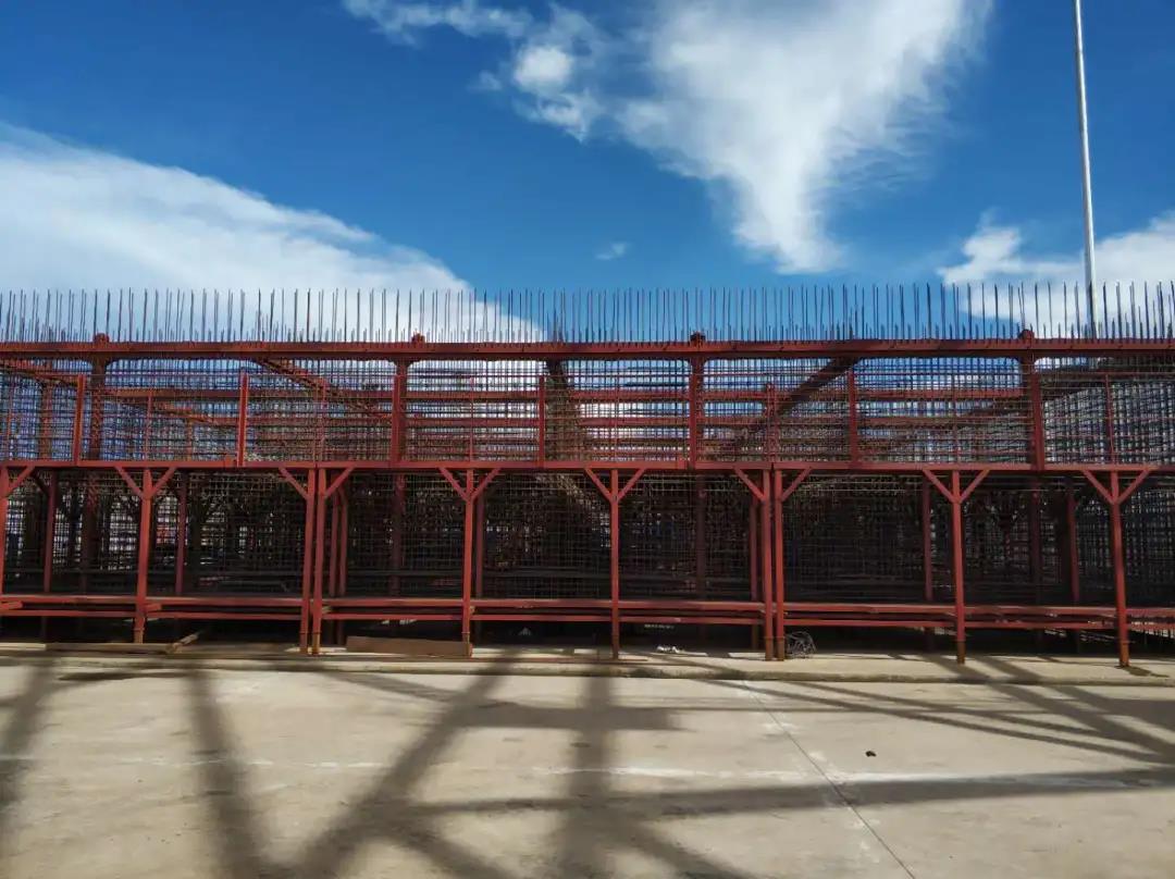 “這樣(yang)就(jiu)能解決問(wen)題(ti)(ti)?”工人們半信半疑。隨著測量(liang)人員校準完(wan)(wan)成,橫(heng)、縱都設有孔洞的模(mo)板被很快(kuai)組裝完(wan)(wan)成,工人們只需“按圖(tu)索驥”,就(jiu)能完(wan)(wan)成鋼(gang)(gang)筋綁(bang)扎(zha)(zha)的標準化施工。功(gong)夫不負(fu)有心人,歷經4天的時(shi)間,40個(ge)工人完(wan)(wan)成了首個(ge)由(you)鋼(gang)(gang)筋綁(bang)扎(zha)(zha)架制成的沉箱單層鋼(gang)(gang)筋籠。一周后,工人數量(liang)減少至30人,以一天一層鋼(gang)(gang)筋綁(bang)扎(zha)(zha)的速(su)度順利完(wan)(wan)成施工任(ren)務。“鋼(gang)(gang)筋間距沒(mei)(mei)有問(wen)題(ti)(ti),垂(chui)直度沒(mei)(mei)有問(wen)題(ti)(ti),鋼(gang)(gang)筋面平整度沒(mei)(mei)有問(wen)題(ti)(ti),這綁(bang)扎(zha)(zha)質(zhi)量(liang)提(ti)升很快(kuai)啊。”監理滿意地(di)在檢查記錄(lu)上打個(ge)了“對勾”。