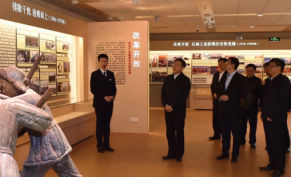 任洪斌一行參觀了(le)中(zhong)國石油(you)展(zhan)廳,調研了(le)北京油(you)氣調控(kong)中(zhong)心(xin),聽取了(le)集團黨(dang)(dang)建(jian)工作匯報,對公司近年來改革發(fa)展(zhan)和黨(dang)(dang)的(de)(de)建(jian)設(she)取得的(de)(de)成(cheng)績,特別是加強黨(dang)(dang)的(de)(de)政治建(jian)設(she)、黨(dang)(dang)建(jian)信息化(hua)和境外黨(dang)(dang)建(jian)等方面(mian)做法給予肯(ken)定。
