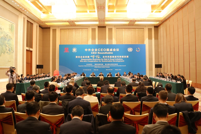 3月(yue)25日,國(guo)(guo)務院(yuan)國(guo)(guo)資委(wei)和(he)聯合(he)(he)國(guo)(guo)全(quan)球(qiu)(qiu)契約組織共(gong)同舉辦了(le)中外企(qi)業CEO圓桌會(hui)議(yi),以“責(ze)任企(qi)業共(gong)建‘一帶(dai)一路’、合(he)(he)作(zuo)共(gong)贏推(tui)進可持(chi)續(xu)發(fa)展”為主(zhu)題,交流(liu)研討,共(gong)倡履(lv)行社會(hui)責(ze)任,共(gong)謀可持(chi)續(xu)發(fa)展。國(guo)(guo)務院(yuan)國(guo)(guo)資委(wei)主(zhu)任肖亞慶、聯合(he)(he)國(guo)(guo)全(quan)球(qiu)(qiu)契約組織總干事金麗莎(sha)出席會(hui)議(yi)并致辭。國(guo)(guo)務院(yuan)國(guo)(guo)資委(wei)副主(zhu)任任洪斌主(zhu)持(chi)會(hui)議(yi)。40多位中外企(qi)業CEO和(he)部分(fen)國(guo)(guo)際組織駐華(hua)機構代表參加(jia)會(hui)議(yi)。