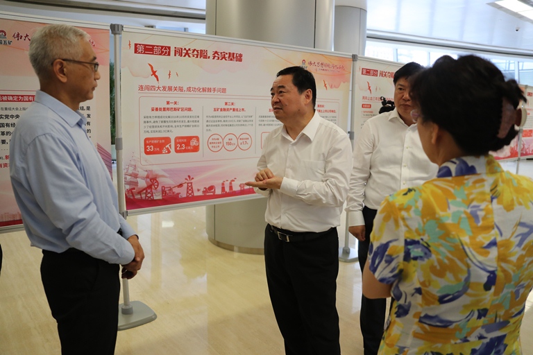 郝鵬深(shen)入(ru)中(zhong)(zhong)(zhong)國(guo)(guo)五(wu)礦(kuang)(kuang)有(you)色(se)院中(zhong)(zhong)(zhong)國(guo)(guo)礦(kuang)(kuang)業(ye)(ye)信息化協同創(chuang)新(xin)中(zhong)(zhong)(zhong)心(xin),與有(you)關院士(shi)、專(zhuan)家探討(tao)礦(kuang)(kuang)產資(zi)源(yuan)領(ling)域(yu)科技創(chuang)新(xin)問(wen)題,同青(qing)年科研人(ren)員(yuan)親(qin)切交流;到中(zhong)(zhong)(zhong)國(guo)(guo)五(wu)礦(kuang)(kuang)總部參(can)觀了企業(ye)(ye)“偉大思想引領(ling)滿帆啟航”——中(zhong)(zhong)(zhong)國(guo)(guo)五(wu)礦(kuang)(kuang)、中(zhong)(zhong)(zhong)冶(ye)集(ji)團重組三周年成就展,對企業(ye)(ye)以高質量黨建(jian)引領(ling)高質量發(fa)展,“互補式重組”實現(xian)三年兩(liang)翻番,推進產業(ye)(ye)鏈持續健康(kang)發(fa)展的顯著(zhu)成績(ji)給(gei)予充分肯定(ding)。郝鵬強(qiang)調,要進一步解放思想,深(shen)化改革,做(zuo)強(qiang)做(zuo)優主業(ye)(ye)實業(ye)(ye),瞄(miao)準(zhun)銅、鋅(xin)、鎳、鉻、稀土等國(guo)(guo)家戰(zhan)略性資(zi)源(yuan),超(chao)前謀劃布局(ju),打造完整產業(ye)(ye)鏈,在維護我(wo)國(guo)(guo)資(zi)源(yuan)安全上發(fa)揮應有(you)作用(yong)。要培(pei)養、用(yong)好(hao)優秀人(ren)才,盡快(kuai)攻克一批(pi)制約行業(ye)(ye)發(fa)展的關鍵核心(xin)技術。