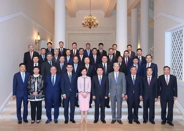 論壇期間(jian),香港(gang)特(te)區(qu)(qu)政(zheng)(zheng)(zheng)府(fu)行政(zheng)(zheng)(zheng)長官林鄭(zheng)月娥(e)(e)(e)率(lv)特(te)區(qu)(qu)政(zheng)(zheng)(zheng)府(fu)部門(men)負責人(ren),在禮賓府(fu)與(yu)國(guo)資委(wei)和中(zhong)央(yang)(yang)(yang)企(qi)業代表(biao)團(tuan)進(jin)行座(zuo)談。林鄭(zheng)月娥(e)(e)(e)表(biao)示(shi),國(guo)資委(wei)和中(zhong)央(yang)(yang)(yang)企(qi)業主要負責人(ren)來港(gang)參加(jia)(jia)第四屆“一(yi)(yi)帶(dai)一(yi)(yi)路(lu)”高峰論壇,充分體現了對香港(gang)特(te)區(qu)(qu)政(zheng)(zheng)(zheng)府(fu)的支(zhi)(zhi)持(chi)(chi),希望香港(gang)企(qi)業與(yu)中(zhong)央(yang)(yang)(yang)企(qi)業“拼船出海”,在共(gong)建“一(yi)(yi)帶(dai)一(yi)(yi)路(lu)”、推(tui)進(jin)粵港(gang)澳大灣區(qu)(qu)建設中(zhong)深化合(he)作(zuo)、優勢互(hu)補,實(shi)現互(hu)利(li)共(gong)贏。郝(hao)鵬介紹了中(zhong)央(yang)(yang)(yang)企(qi)業在港(gang)發展情況,表(biao)示(shi)國(guo)資委(wei)和中(zhong)央(yang)(yang)(yang)企(qi)業堅(jian)決貫徹“一(yi)(yi)國(guo)兩制”方針,堅(jian)定(ding)支(zhi)(zhi)持(chi)(chi)林鄭(zheng)月娥(e)(e)(e)行政(zheng)(zheng)(zheng)長官和香港(gang)特(te)區(qu)(qu)政(zheng)(zheng)(zheng)府(fu)依法施政(zheng)(zheng)(zheng)、積(ji)極作(zuo)為,堅(jian)定(ding)支(zhi)(zhi)持(chi)(chi)香港(gang)發展經濟、改(gai)善民生,堅(jian)定(ding)支(zhi)(zhi)持(chi)(chi)和團(tuan)結所(suo)有愛國(guo)愛港(gang)人(ren)士(shi),攜(xie)手共(gong)創香港(gang)更加(jia)(jia)繁榮穩(wen)定(ding)的新未來。
