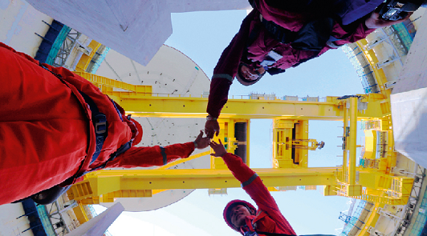2018年3月,我國自(zi)(zi)主知識(shi)產權的(de)(de)第三代核電(dian)“華(hua)龍一號”示范(fan)工程第二臺機組進行(xing)穹頂吊裝(zhuang)(zhuang)。在穹頂起吊那一刻(ke),參(can)與吊裝(zhuang)(zhuang)的(de)(de)工程師們留下了(le)這張(zhang)合影,然后奔赴各自(zi)(zi)的(de)(de)工作崗位。世界核電(dian)迎來了(le)“中國芯”時代,為(wei)茁壯成長的(de)(de)“華(hua)龍一號”喝(he)彩。