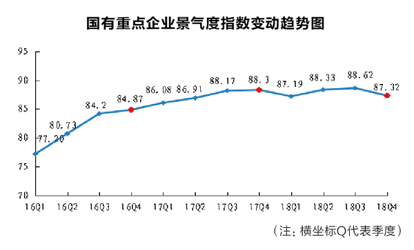 2.穩(wen)就業(ye)、穩(wen)外(wai)貿(mao)、穩(wen)信心(xin)(xin),國企(qi)穩(wen)定器(qi)作用凸顯。12月末(mo),國有重點(dian)企(qi)業(ye)期末(mo)從業(ye)人員數(shu)1644.4萬人,比年(nian)初(chu)增加24萬人;全年(nian)實現出口產品銷售收入11008.7億元,同比增長(chang)9.6%,增速比年(nian)初(chu)加快1.2個百分(fen)點(dian);另據測算,2018年(nian)國有重點(dian)企(qi)業(ye)景氣度指數(shu)年(nian)平(ping)均值(zhi)達(da)87.87%,是近七年(nian)來(lai)的(de)最好水平(ping)。國有重點(dian)企(qi)業(ye)為穩(wen)定全年(nian)就業(ye)形(xing)勢、對外(wai)貿(mao)易、市場(chang)信心(xin)(xin)做出應有貢(gong)獻。