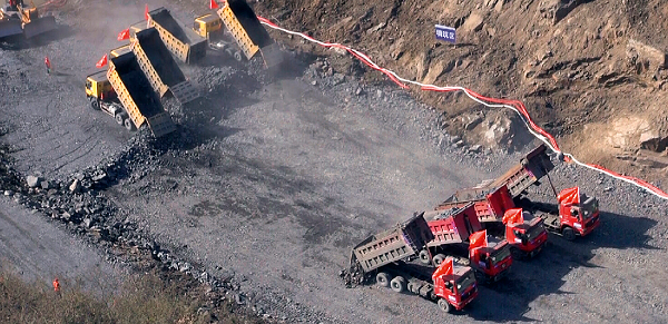 國投雅礱江兩河口水電站大壩圍堰填筑現場