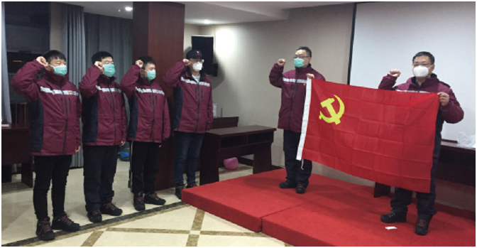 1月29日,武漢。中核集團核工業總醫院的隊員們重溫入黨誓詞。