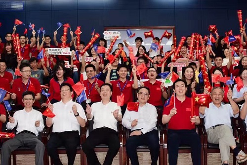 中廣核大(da)亞灣(wan)基地員工和家屬共同歡(huan)慶搖旗吶喊