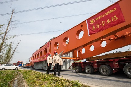 國網江蘇電力青年突擊隊隊員在設備運輸現場