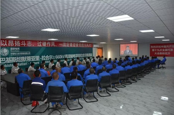 中電裝備公司巴基斯坦默蒂亞里—拉合爾直流輸電工程項目部集中收看直播。