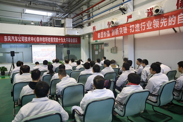 10月18日上午,東風汽車公司技術中心組織集中收聽收看黨的十九大開幕會盛況