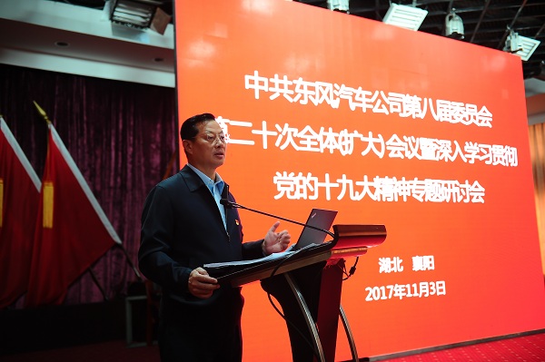 11月(yue)3日,中共東風汽車公司第八屆委(wei)員(yuan)會第二十(shi)次全體(擴大)會議暨深入學習貫徹黨的(de)十(shi)九大精神(shen)專(zhuan)題研討(tao)會在襄陽召開。東風公司領導竺延風、李紹燭、劉(liu)衛東、安鐵(tie)成、喬陽、雷(lei)平、何偉出席會議并參(can)加(jia)小(xiao)組研討(tao)。