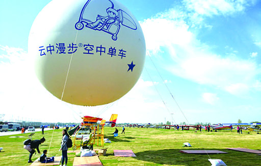 “云中漫(man)步”空中單車是一款面向大(da)眾娛樂的(de)無動(dong)力(li)低空騎行氣(qi)球,氣(qi)球內充有(you)(you)氦氣(qi),系(xi)有(you)(you)保護(hu)繩,可(ke)使旅(lv)客(ke)在(zai)不高于50米的(de)升限(xian)范圍內(室內、室外不限(xian))獨自(zi)進行空中騎行體(ti)驗,可(ke)廣(guang)泛用于各(ge)大(da)旅(lv)游景區(qu)、主題公園和城(cheng)市廣(guang)場的(de)旅(lv)游觀光項目和運動(dong)游樂項目,也(ye)可(ke)作為新(xin)穎(ying)的(de)廣(guang)告(gao)載(zai)體(ti)。
