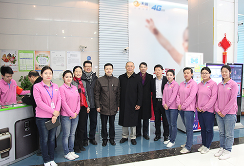 閻曉峰在(zai)中國電信朝陽門營業廳(ting)與(yu)干部職工(gong)合(he)影
