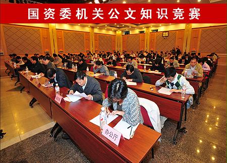 按照國資(zi)(zi)委(wei)(wei)(wei)主任王勇關(guan)(guan)于(yu)進一步提高國資(zi)(zi)委(wei)(wei)(wei)機(ji)(ji)關(guan)(guan)公(gong)(gong)(gong)文(wen)質量和辦(ban)(ban)文(wen)水平的有關(guan)(guan)要(yao)求,結合(he)國資(zi)(zi)委(wei)(wei)(wei)機(ji)(ji)關(guan)(guan)創先爭優(you)活(huo)動(dong)(dong),國資(zi)(zi)委(wei)(wei)(wei)于(yu)2011年7-10月(yue)(yue)開(kai)展國資(zi)(zi)委(wei)(wei)(wei)公(gong)(gong)(gong)文(wen)知(zhi)識(shi)競賽系列活(huo)動(dong)(dong)。委(wei)(wei)(wei)領導高度重視本次公(gong)(gong)(gong)文(wen)知(zhi)識(shi)競賽活(huo)動(dong)(dong),報經王勇主任同意,委(wei)(wei)(wei)機(ji)(ji)關(guan)(guan)成(cheng)(cheng)立了(le)由國資(zi)(zi)委(wei)(wei)(wei)副秘書(shu)長(chang)(chang)郭建新(xin)為組(zu)長(chang)(chang),辦(ban)(ban)公(gong)(gong)(gong)廳、人事(shi)局(ju)、管(guan)理局(ju)、機(ji)(ji)關(guan)(guan)黨委(wei)(wei)(wei)、紀委(wei)(wei)(wei)為成(cheng)(cheng)員(yuan)的國資(zi)(zi)委(wei)(wei)(wei)機(ji)(ji)關(guan)(guan)公(gong)(gong)(gong)文(wen)知(zhi)識(shi)競賽工作(zuo)領導小(xiao)組(zu),并制定(ding)了(le)競賽工作(zuo)方案和具體實(shi)施(shi)計劃。7-8月(yue)(yue),委(wei)(wei)(wei)機(ji)(ji)關(guan)(guan)公(gong)(gong)(gong)文(wen)知(zhi)識(shi)競賽工作(zuo)領導小(xiao)組(zu)舉(ju)辦(ban)(ban)了(le)以(yi)公(gong)(gong)(gong)文(wen)要(yao)素、公(gong)(gong)(gong)文(wen)擬制、公(gong)(gong)(gong)文(wen)運轉和檔案管(guan)理為內容的公(gong)(gong)(gong)文(wen)知(zhi)識(shi)講(jiang)座;9月(yue)(yue)份以(yi)委(wei)(wei)(wei)機(ji)(ji)關(guan)(guan)全體人員(yuan)答題的形式進行(xing)了(le)初賽;10月(yue)(yue)14日上午,復賽在委(wei)(wei)(wei)機(ji)(ji)關(guan)(guan)西便(bian)門、安定(ding)門辦(ban)(ban)公(gong)(gong)(gong)區同時舉(ju)行(xing),每廳局(ju)由廳局(ju)級(ji)領導帶(dai)隊,5人組(zu)成(cheng)(cheng)競賽隊,進行(xing)閉卷(juan)答題,委(wei)(wei)(wei)機(ji)(ji)關(guan)(guan)25個隊共(gong)124人參加(jia)了(le)復賽。