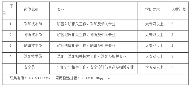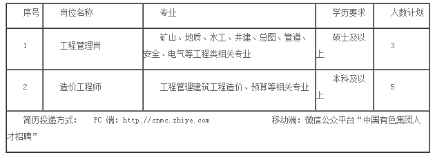 4、認可中國有色集團企業精神和價值觀,愿意為國家的資源安全做出貢獻。符合相關職位任職基本條件。