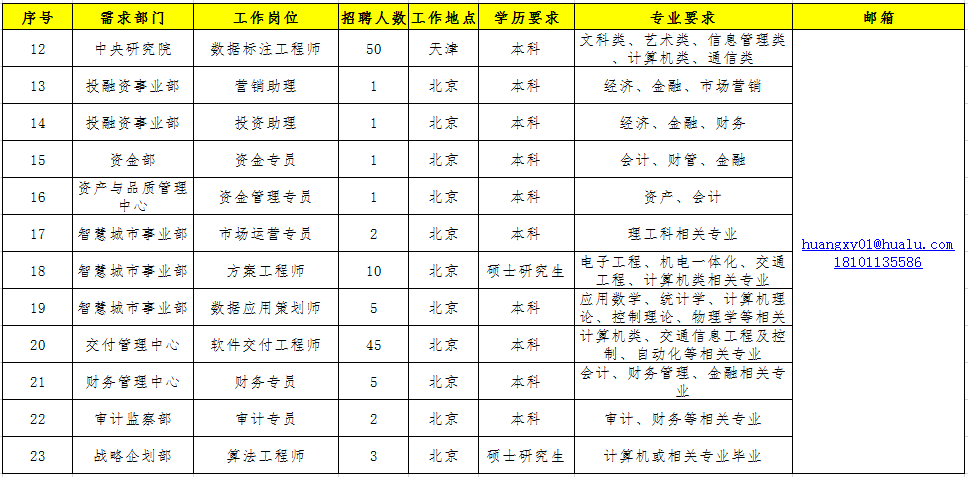 二、招聘需求范圍
