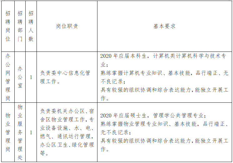 國(guo)(guo)務院(yuan)國(guo)(guo)有(you)資(zi)產監督(du)管理委員會(以下簡稱國(guo)(guo)資(zi)委)機關服務中心是(shi)國(guo)(guo)資(zi)委所(suo)屬(shu)事業(ye)單位,主要承(cheng)擔為國(guo)(guo)資(zi)委機關辦公與職工生活提供(gong)后勤服務,承(cheng)辦機關委托事項等(deng)工作職能。根據(ju)工作需(xu)要,按照《事業(ye)單位公開招聘人(ren)員暫行規定》,擬面向(xiang)2020年(nian)應屆畢業(ye)生公開招聘2名工作人(ren)員,現將有(you)關事項公告如下: