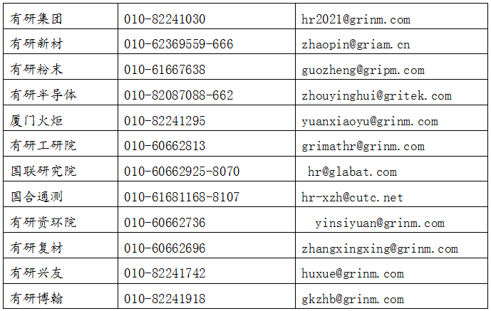 4、有(you)研集團(tuan)及所屬公(gong)司聯系方式: