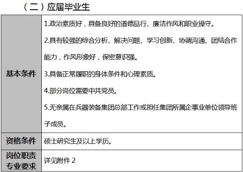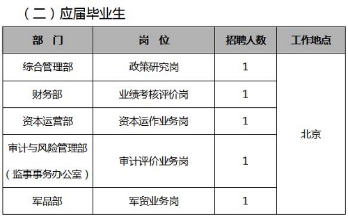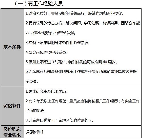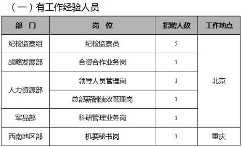 中國兵器裝備集團(tuan)有限(xian)公司總(zong)部計劃招聘10名有工作經驗業(ye)(ye)(ye)(ye)務(wu)崗(gang)人員和5名應(ying)屆高(gao)校畢(bi)(bi)業(ye)(ye)(ye)(ye)生。有工作經驗人員入(ru)職后,直接上崗(gang)工作;應(ying)屆高(gao)校畢(bi)(bi)業(ye)(ye)(ye)(ye)生先派(pai)到(dao)集團(tuan)公司下屬單位(北京(jing)以外(wai)地區)培養(yang)鍛煉1年,跟班(ban)勞動、跟隨管理(li)、了解基層、了解企業(ye)(ye)(ye)(ye)、豐富經歷,提升(sheng)綜合業(ye)(ye)(ye)(ye)務(wu)管理(li)能力,培養(yang)期(qi)滿經考(kao)核合格后返回總(zong)部相關業(ye)(ye)(ye)(ye)務(wu)崗(gang)工作。現(xian)將有關招聘信(xin)息公告如下: